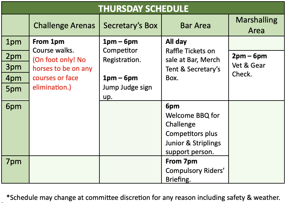 Program Download the 2025 King of the Ranges program here. Thursday Officials & Challenge Competitors only Friday Saturday Sunday